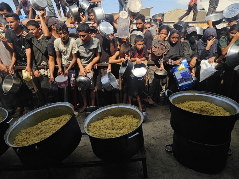 İsrail'in saldırıları altındaki Filistinliler, kıtlık ile mücadele ediyor. Han Yunus'ta Filistinlilere, bir hayır kurumu tarafından sıcak yemek dağıtımı yapıldı.