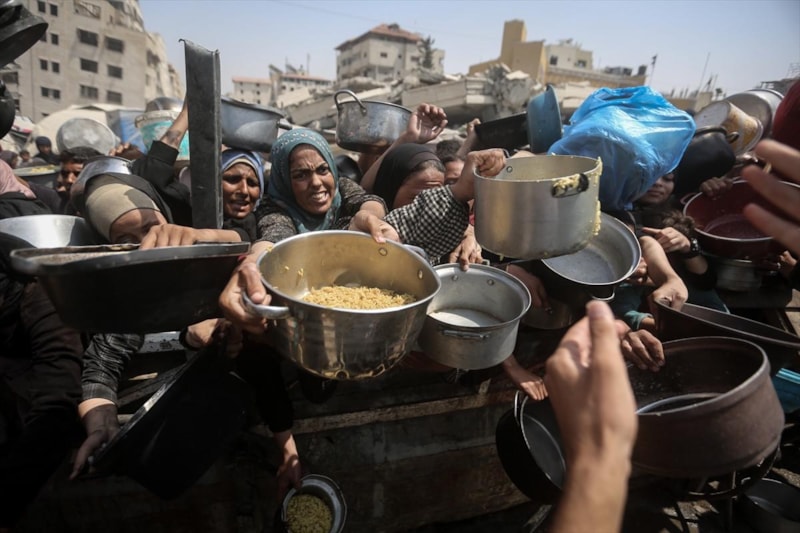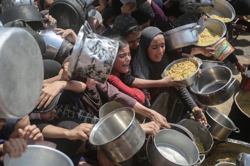 İsrail'in uyguladığı abluka ile yardım girişiminin olmadığı Gazze'de, bir hayır kurumu yemek dağıttı. Açlıkla mücadele eden Filistinliler, dağıtım sırasında yoğunluk oluşturdu.