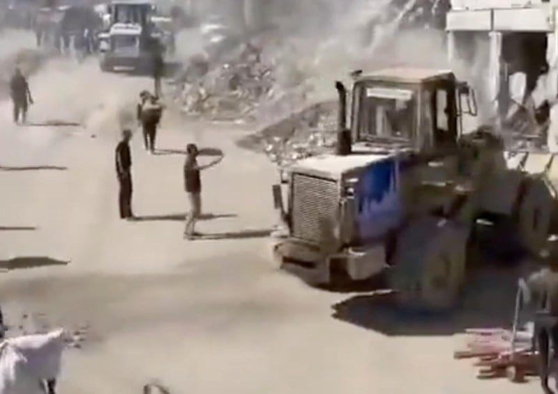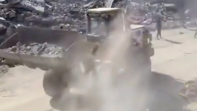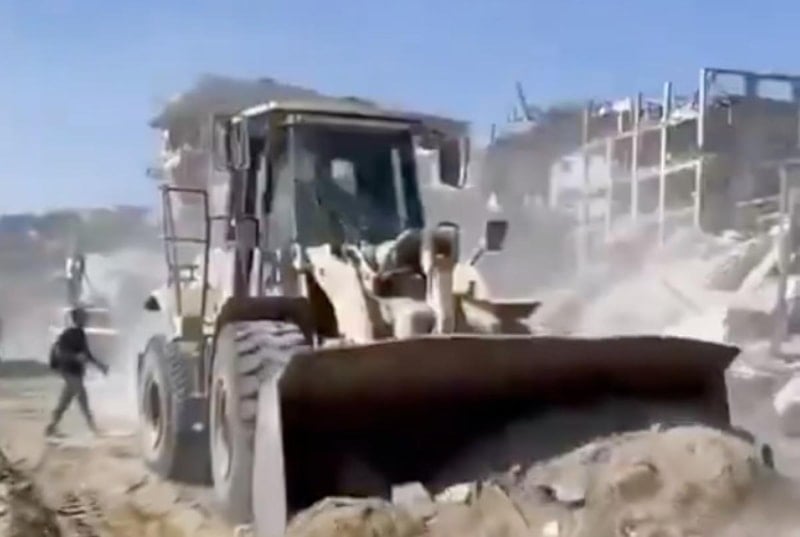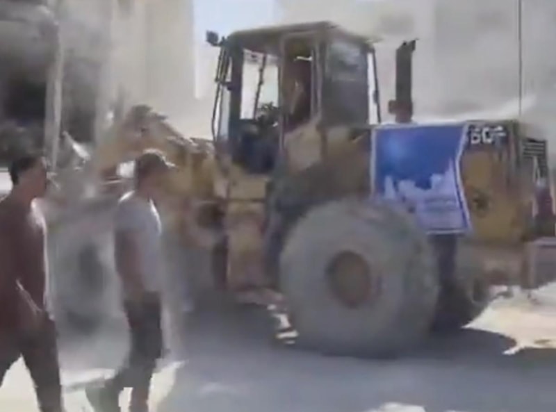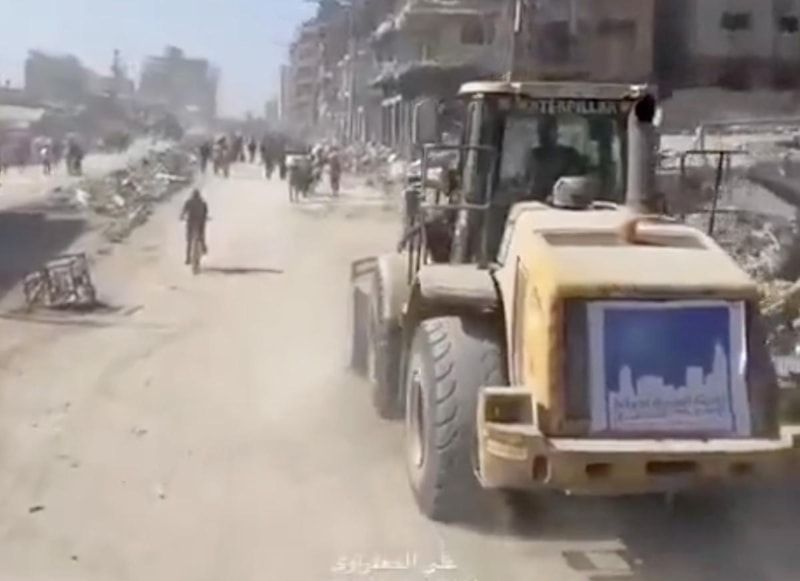 Gazze Belediyesi'ne ait araç ana caddeleri enkazdan temizlemek için harekete geçti.