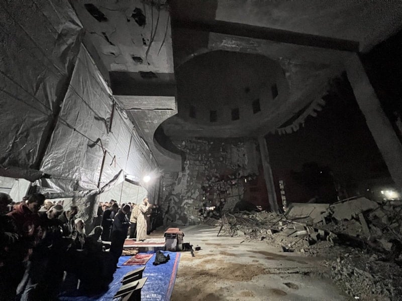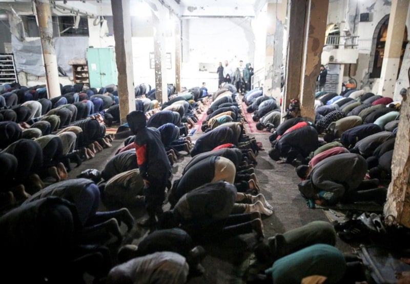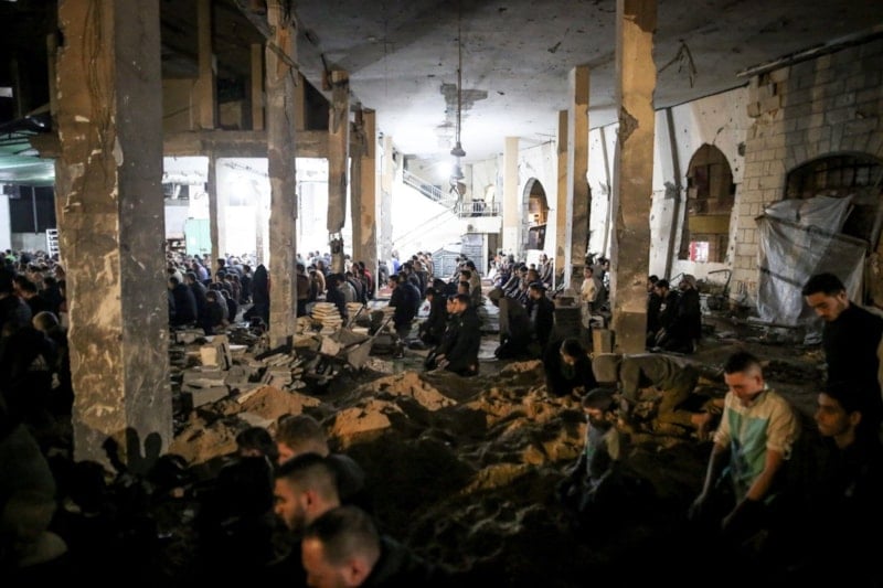 Gazzeliler, İsrail saldırılarında yıkılan ya da ağır hasar gören camilerin bulunduğu alanlarda ve kurulan çadır mescitlerde ilk teravih namazı için bir araya geldi. Önceki yıllarda cami avlularını ve meydanları dolduran kalabalıkların yerini, sınırlı sayıdaki ibadet alanında toplanan cemaat aldı.