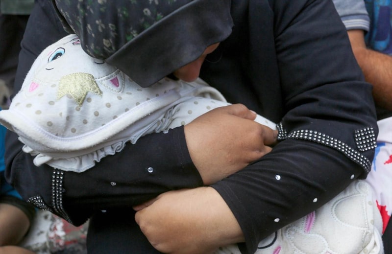 7 yaşındaki çocuk Lina Şeyh Halil'in cansız bedeni, ailesinin kollarında taşındı.