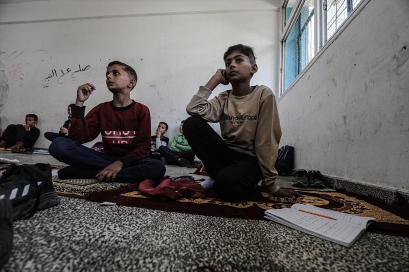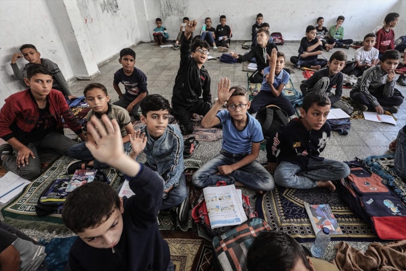 İsrail ile Hamas arasındaki ateşkesin ardından Gazze'de eğitimleri yarım kalan çocuklar, yeniden BM'ye ait okullarda ders başı yaptı.