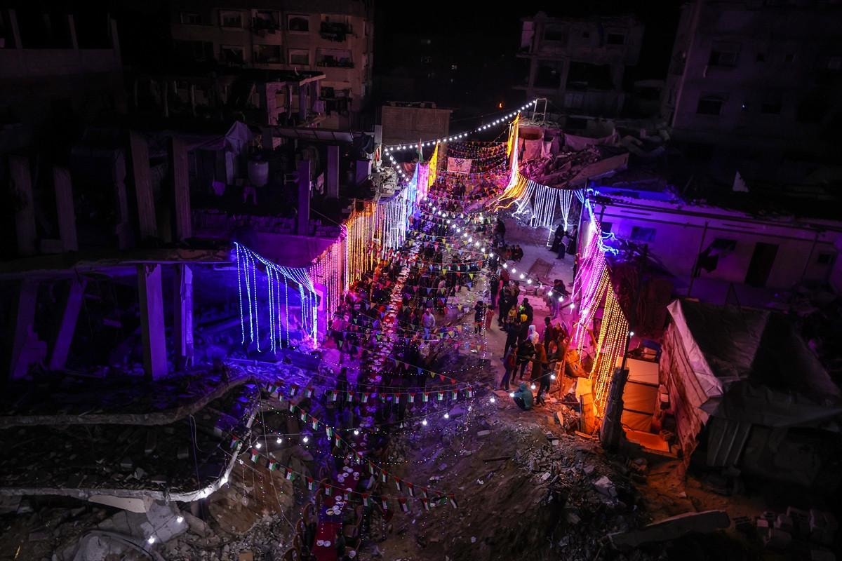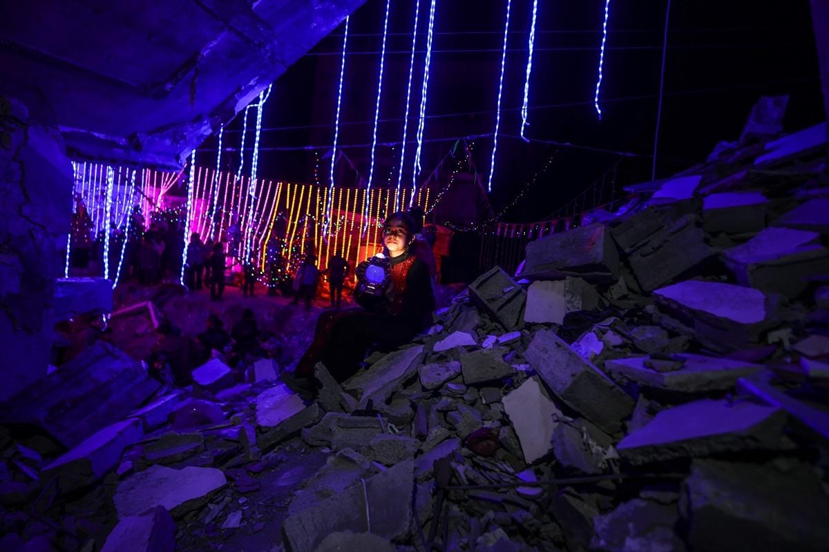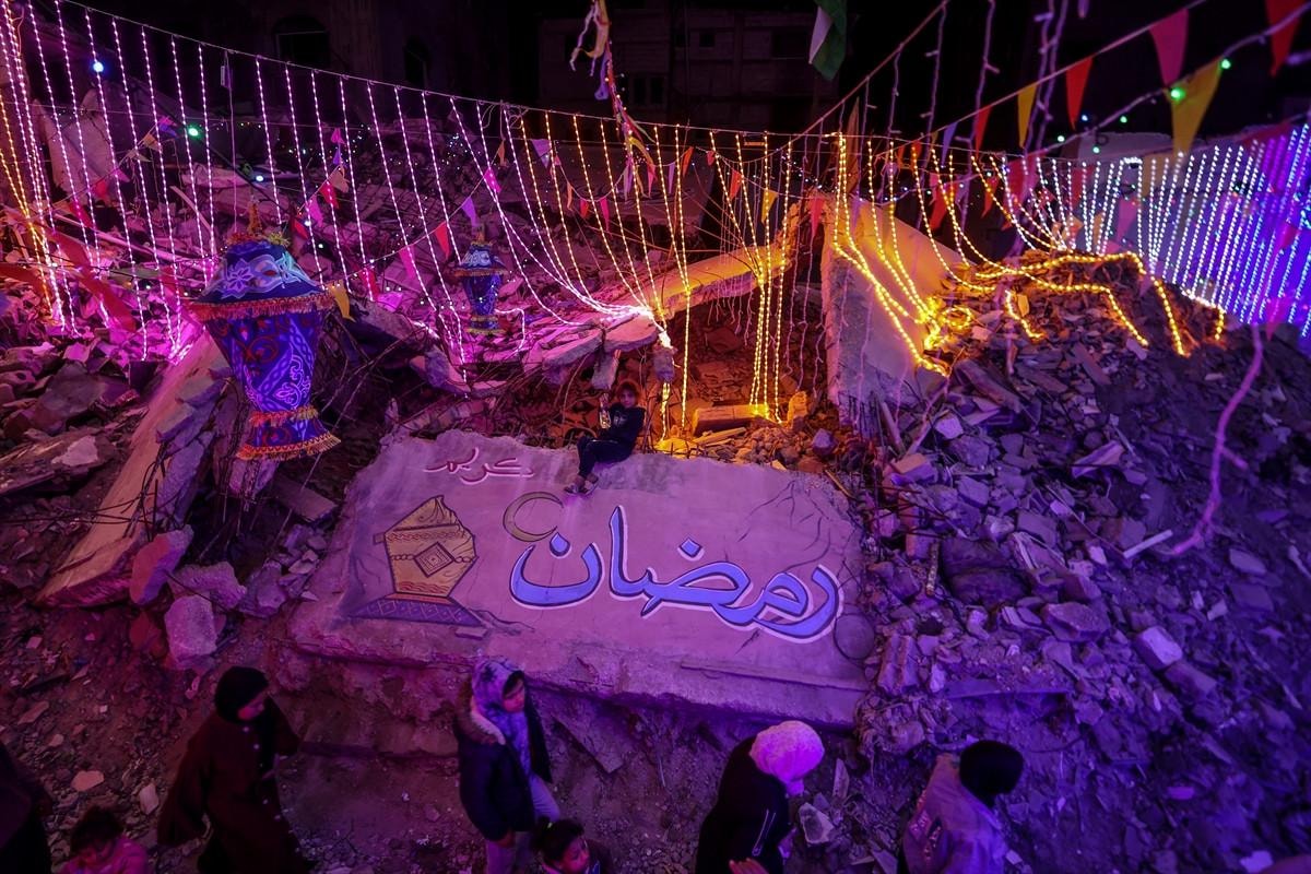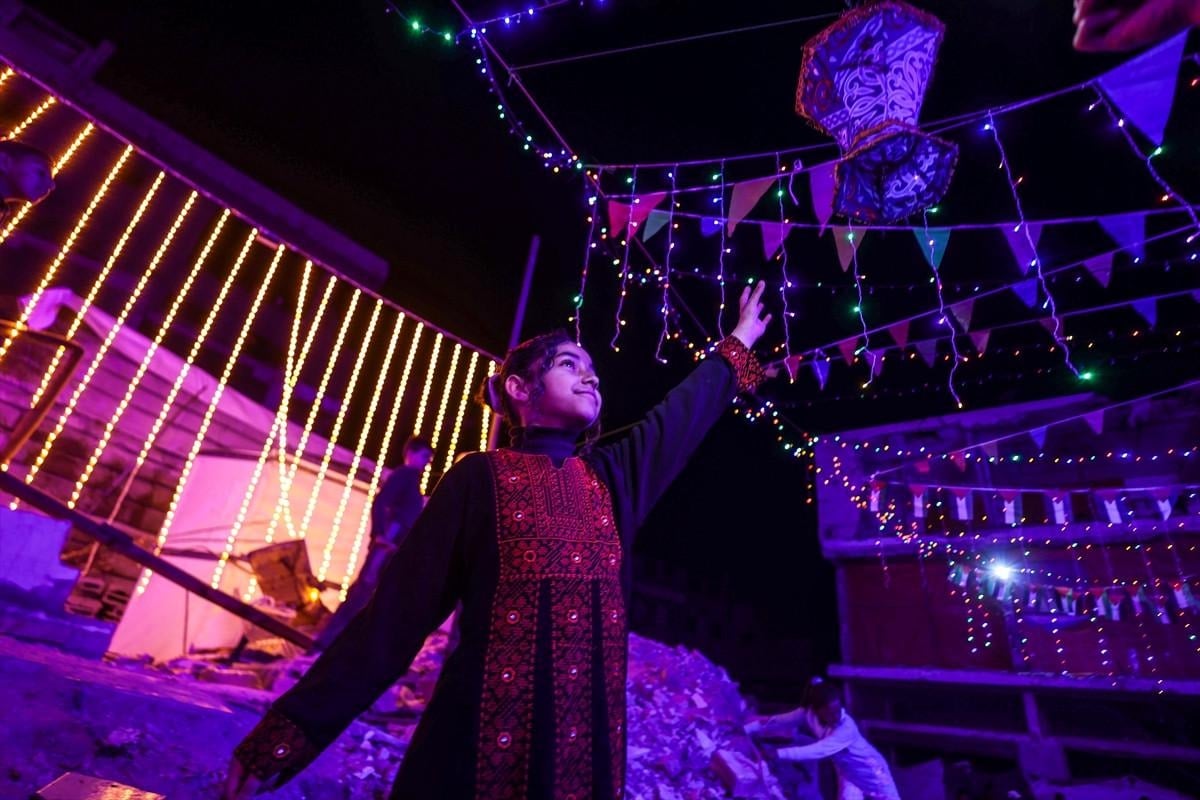 Filistinliler, yıkımın ortasında ramazan ayına özel yapılan ışıklı süslemelerle Ramazan'ın manevi atmosferini yaşadı.