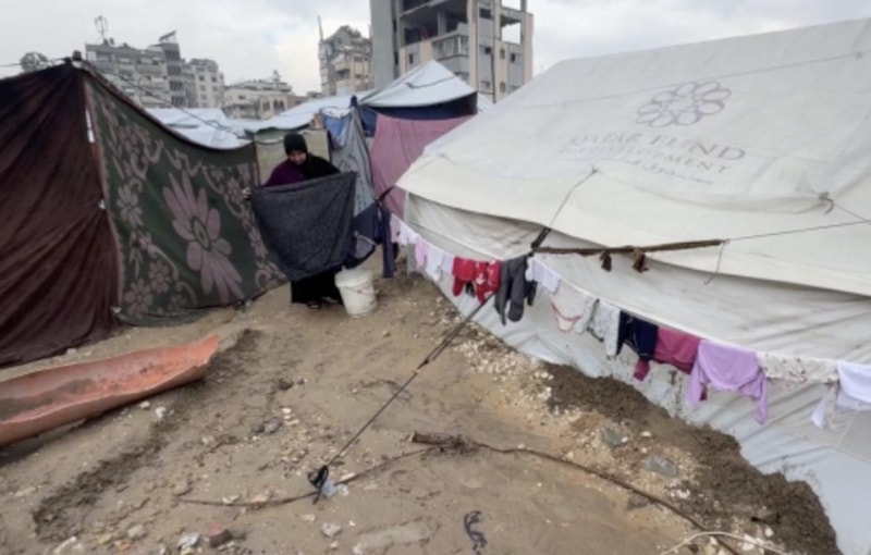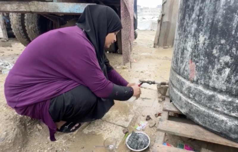 "Çadırda kış bizi çok zorluyor. Yere serecek bir şeyimiz olmadığı için zemin kayıyor. Yağmur da yağınca kayganlaşıyor, ne abdest alabiliyoruz ne namaz kılabiliyoruz ne ayakta durabiliyoruz. Sürekli bu vaziyette oturuyoruz."