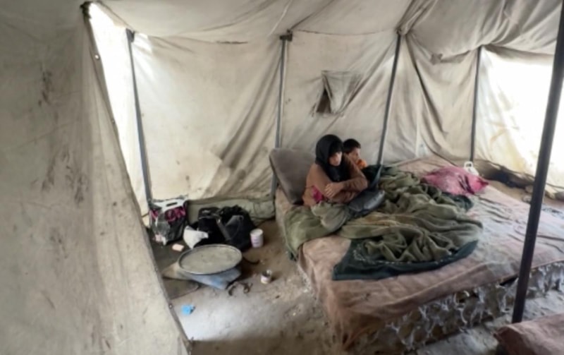 Felçli olduğu için yatakta yatan ve kışlık kıyafetleri olmadığı için de battaniyeye sarılan Arir, "Hala yazlık giysilerle duruyoruz. Aralık ayındayız ve bu çocuk (battaniyenin altındaki) kısa kollu kıyafetle duruyor. Çocuklarıma kıyafet istiyorum. En büyük çocuğum 20 yaşında ama çalışacağı bir iş yok. Hepimiz işsiz güçsüz oturuyoruz." dedi.