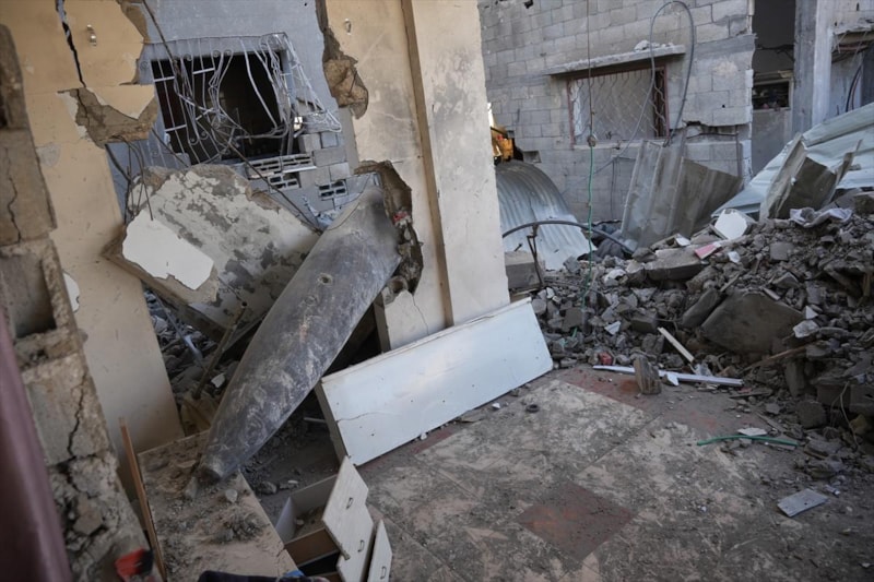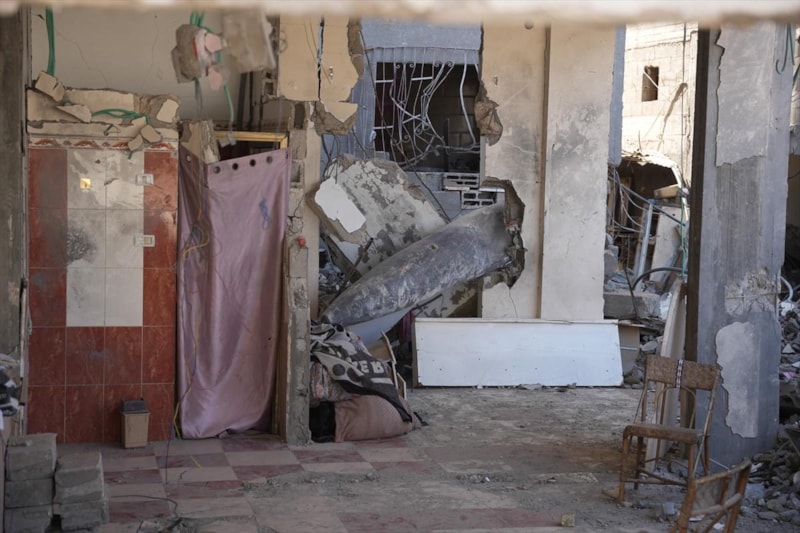 El-Hattu Ailesi, İsrail ordusunun Gazze kentinin En-Nafak bölgesindeki evlerine attığı ancak patlamayan bir “Mark 84” (MK-84) bombasının gölgesinde yaşam mücadelesi veriyor. Serbest düşümlü bu bomba, bina bloklarını yıkabilecek güçte olmasına rağmen duvara saplanmış halde duruyor.