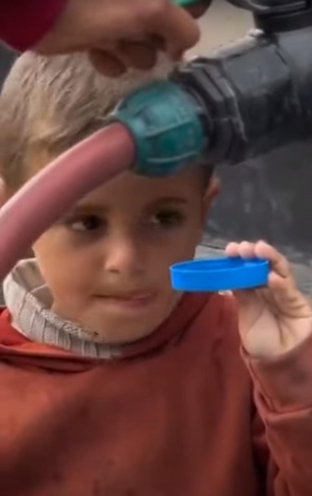İsrail ablukası nedeniyle su kıtlığının yaşandığı Gazze'de Filistinli bir çocuk, şişesini doldurabilmek için su damlalarını topladı.