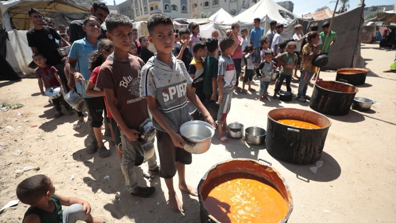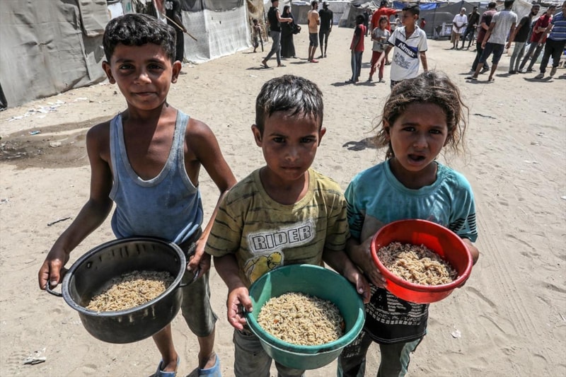 Ayrıca Filistinli çocuklar da, dağıtılan yemeklerden alabilmek için kuyrukta bekledi.