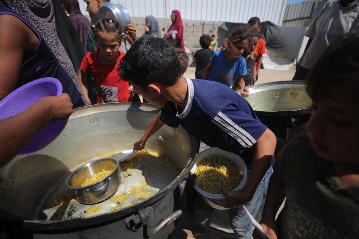 İsrail’in Gazze Şeridi’ne uyguladığı abluka ve devam eden saldırılar nedeniyle gıdaya erişimde zorluk yaşayan Filistinlilere, bir hayır kurumu tarafından sıcak yemek dağıtımı yapıldı.