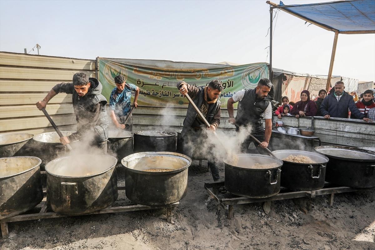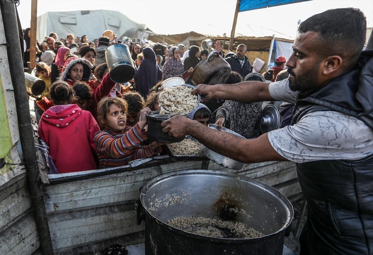 İsrail ordusunun saldırılarından kaçarak Gazze Şeridi'nin güneyinde yer alan Han Yunus kentine sığınan Filistinlilere, hayır kurumları tarafından yemek dağıtımı yapıldı. Dağıtım sırasında yoğunluk yaşandı.