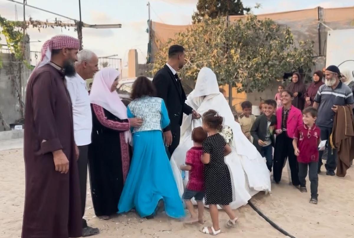Yapılan sade düğünle Samir ve Majdolin çifti, Gazze’de umudun devam ettiği mesajını tüm dünyaya duyurdu.