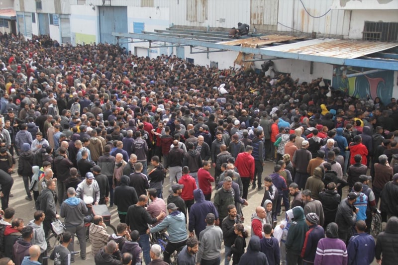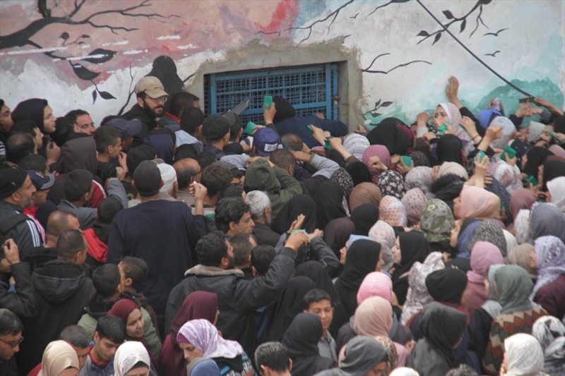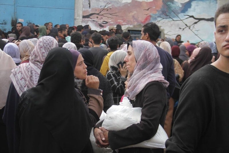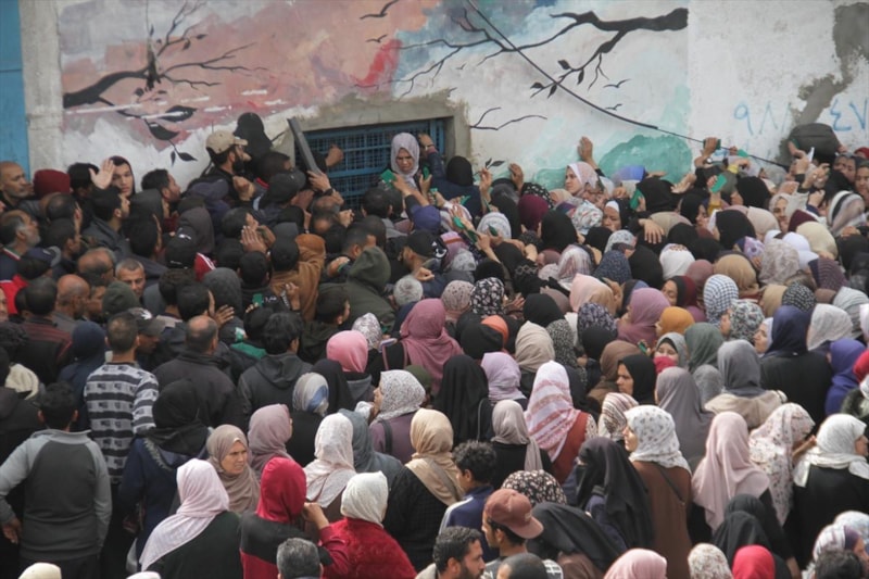Yaklaşık 4 ay sonra gerçekleşen bu yardıma erişebilmek için yüzlerce Filistinli, UNRWA'ya ait bir dağıtım merkezine akın etti.