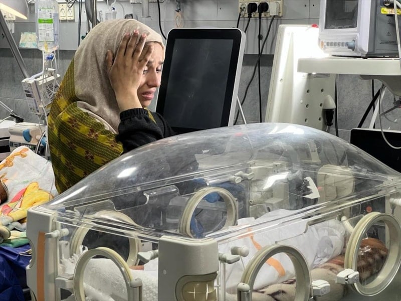 Bebeğin annesi, kuvözün önünde ağlayarak bebeğine veda etti.