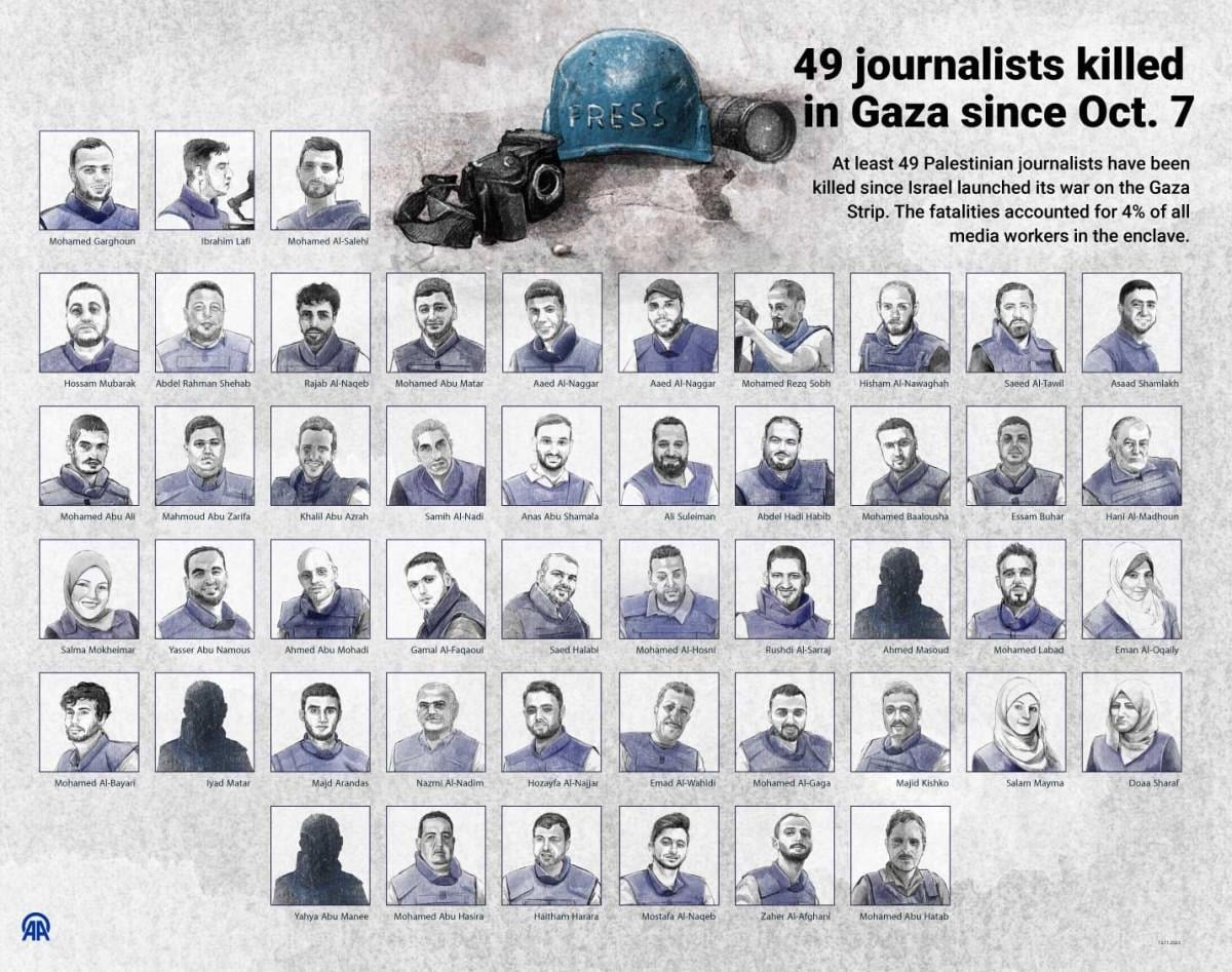 Saldırıların başladığı 7 Ekim'den bu yana öldürülen toplam gazeteci sayısı 49'a yükseldi.