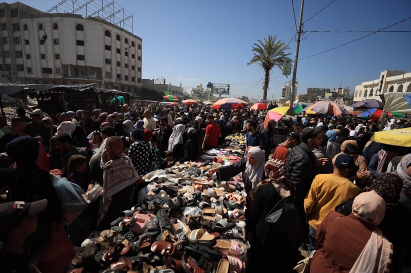 Bombardımanlar ve yıkımın gölgesinde hayata tutunmaya çalışan Gazzeliler, bayram öncesi alışveriş telaşına rağmen derin bir hüznü de yüreklerinde taşıyor.