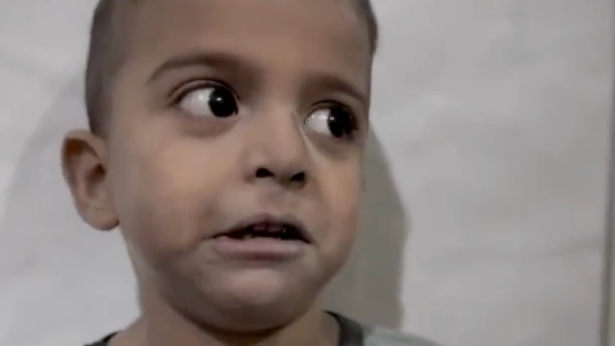 Minik bir erkek çocuğunun korkudan titrediği anlar kameraya yansıdı.