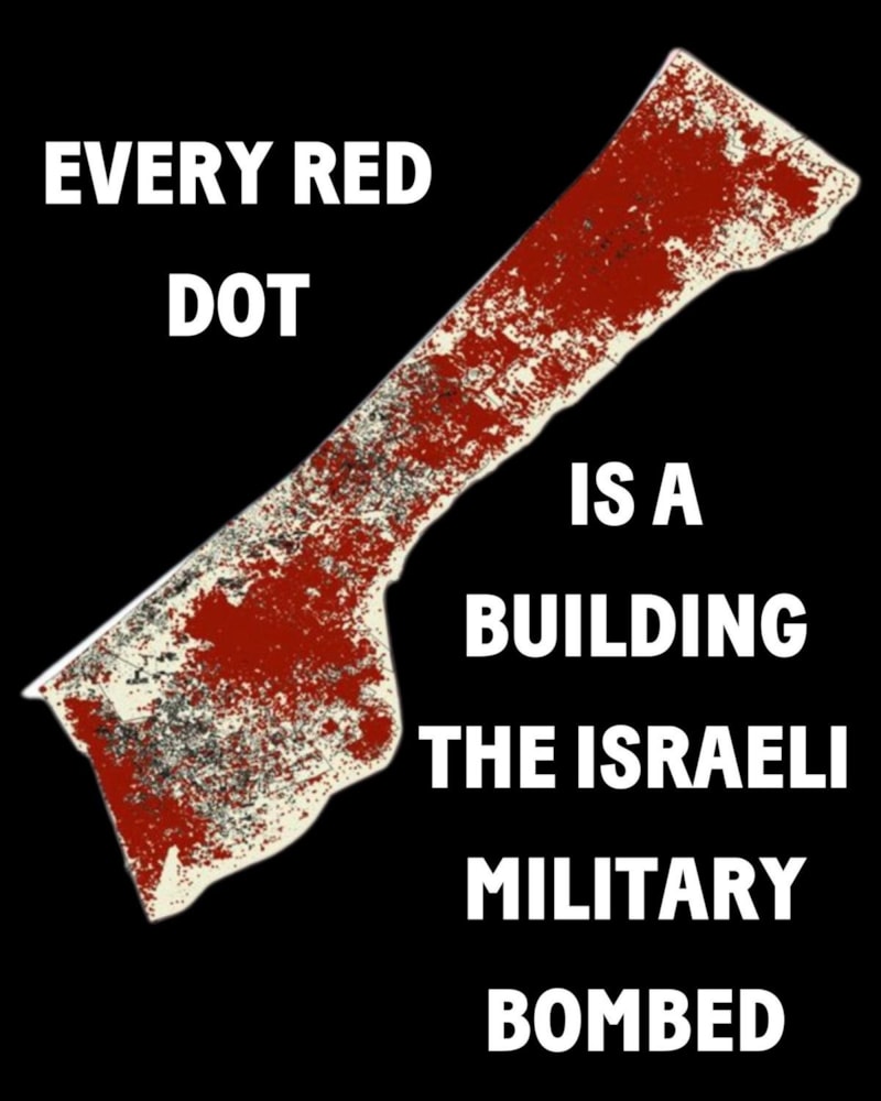 Siyonizm karşıtı örgüt Jewish Voice for Peace (Barış için Yahudi Sesi), BM uydu verilerini kullanarak İsrail'in 7 Ekim'den bu yana Gazze Şeridi'ne attığı 70 binden fazla bombanın haritasını çıkardı.