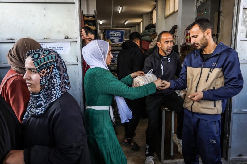 Han Yunus kentinde yaşayan Gazzeliler, ekmek alabilmek için fırınların önünde uzun saatler boyunca kalabalık kuyruklarda beklemek zorunda kalıyor.