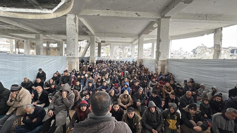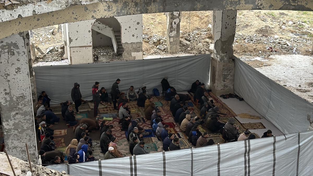İsrail’in aylardır süren saldırıları nedeniyle camiler büyük ölçüde tahrip olurken, Filistinliler ibadetlerini sürdürebilmek için yıkıntılar arasında saf tuttu.