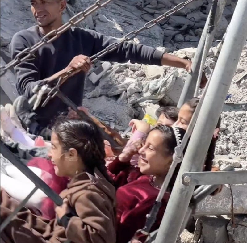 Bayramı yıkıntıların arasında geçiren Filistinli çocuklara ilişkin yaşanan son gelişmede ise, kayda alınan görüntülerde, salıncağa binen çocukların eğlencesi tebessüm ettirdi.
