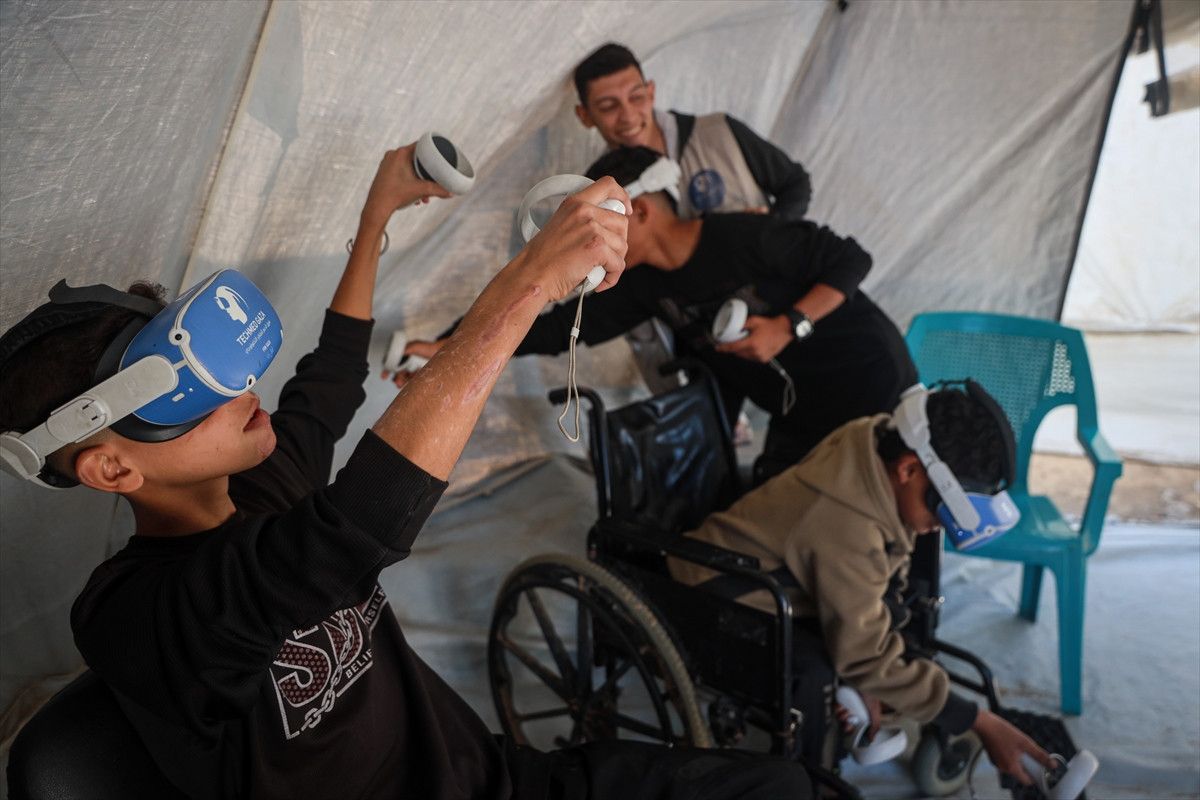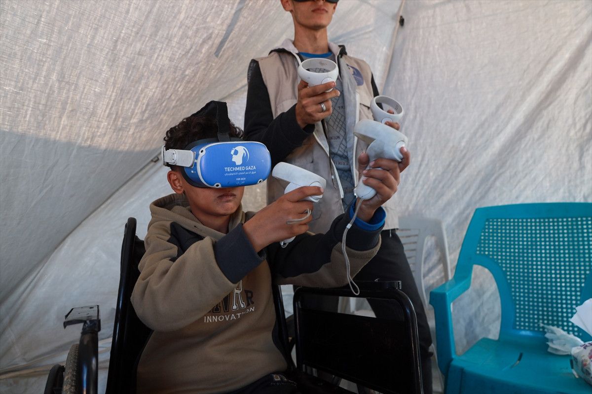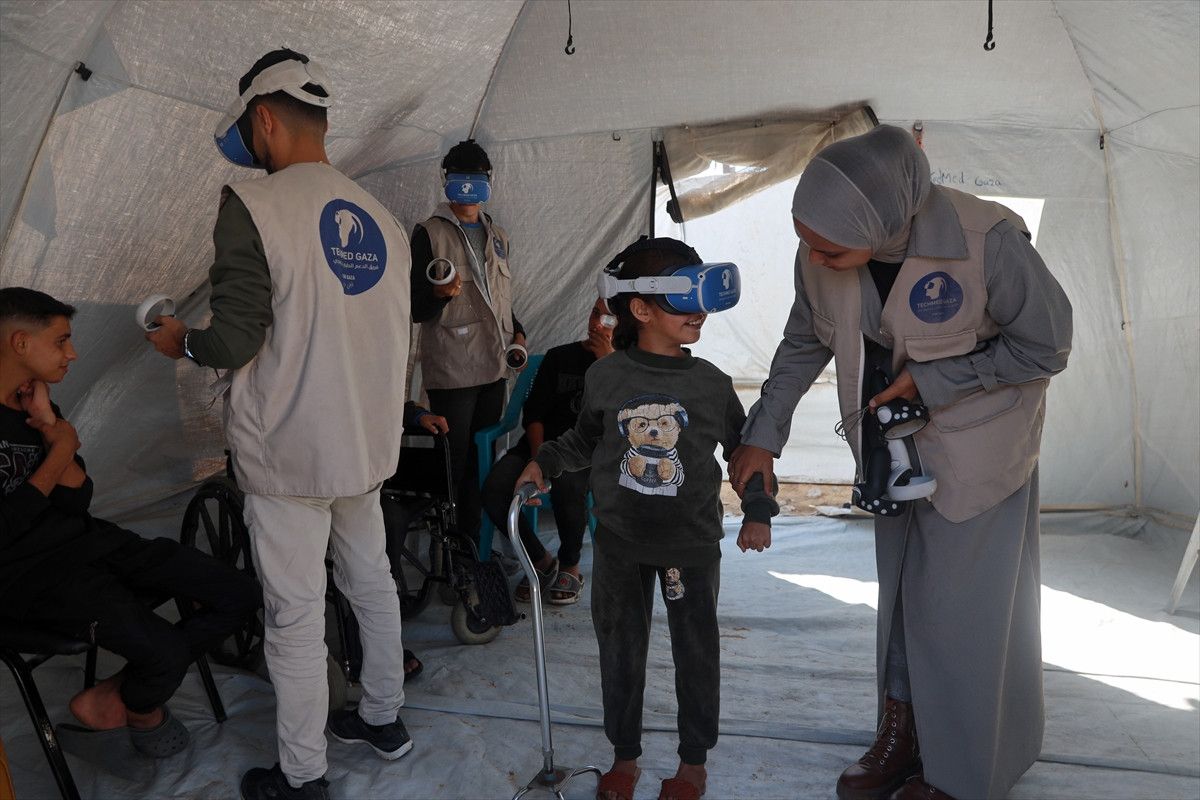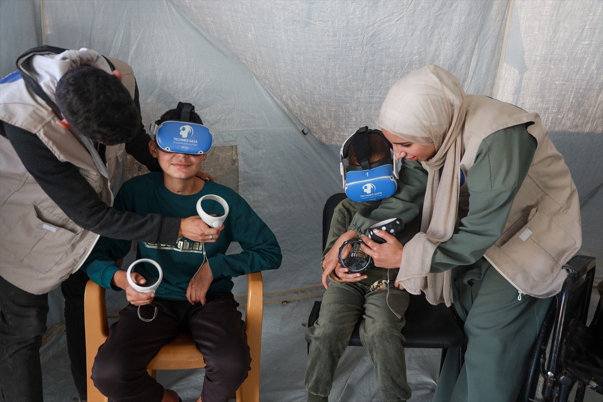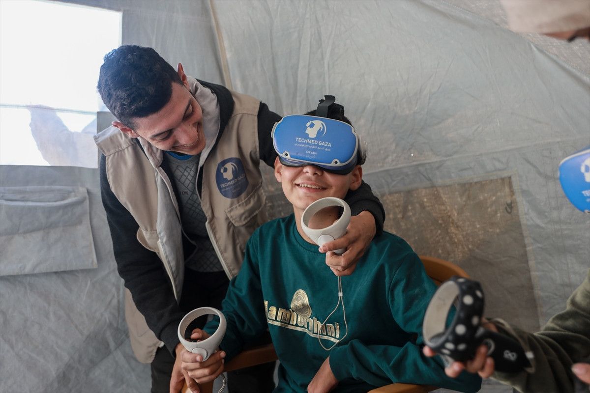 Tıbbi Teknoloji Destek Grubu (TECHMED GAZA), çocukların bu travmaların üstesinden gelebilmesi ve yeniden topluma entegre olabilmeleri için bir yıl önce Zevayide'de bir çadırda VR terapiye başladı.