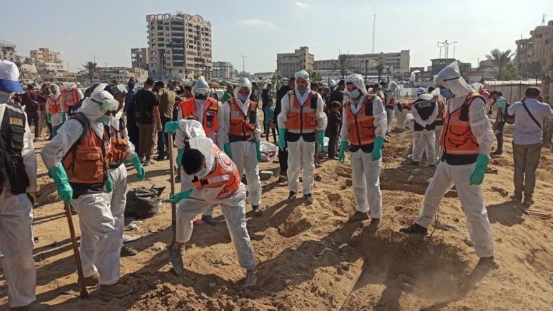 Bölgede İsrail saldırıları nedeniyle toplu şekilde defnedilen cenazeler, kimlik tespiti için mezarlardan çıkarılmaya başladı.