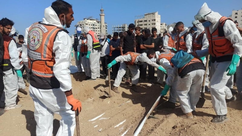 Kimlik tespiti için cenazeleri Şifa Hastanesi’ne nakledeceğiz. Kimliği tespit edilemeyenler, kimsesiz olarak listelenecek ve Gazze'nin merkezindeki Deir al-Balah'ta bulunan özel bir mezarlığa defnedilecek" dedi.