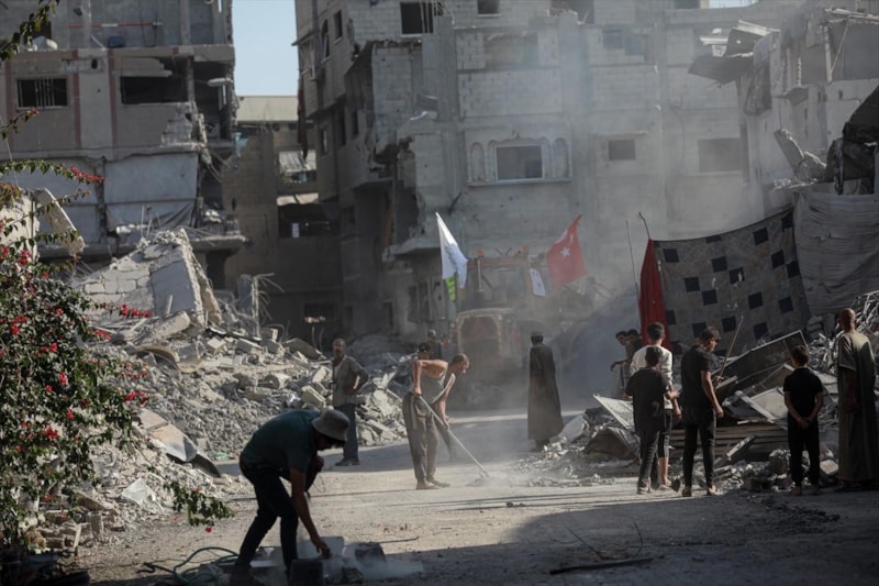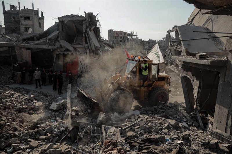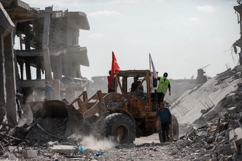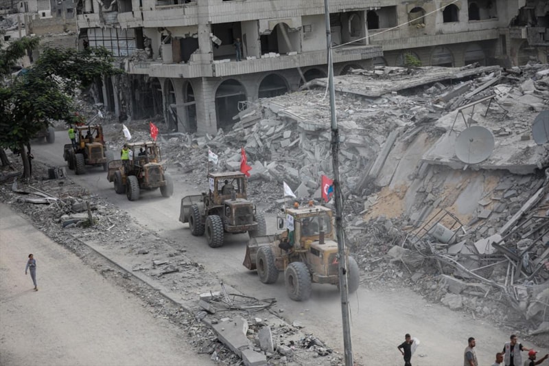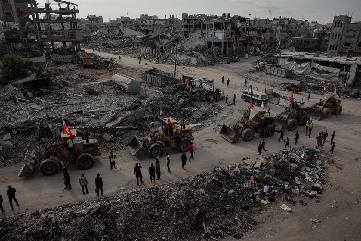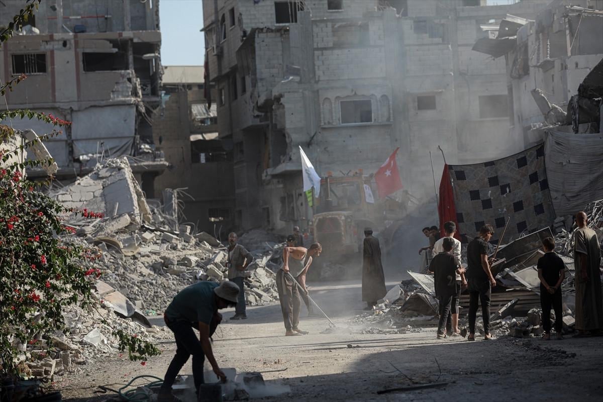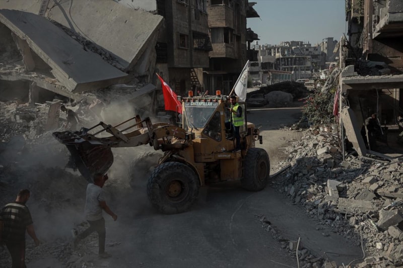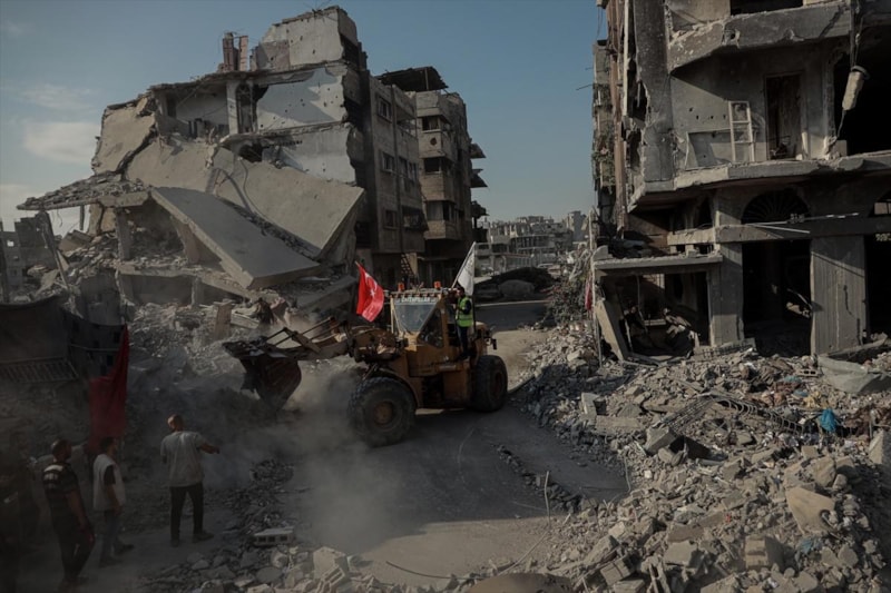 Gazze'de ateşkesin yürürlüğe girmesinin ve İsrail ordusunun sarı hata çekilmesinin ardından, enkaz temizleme çalışmaları başladı.