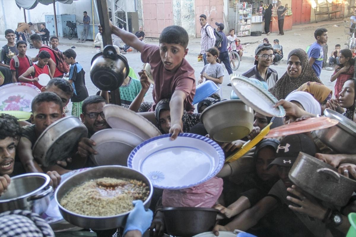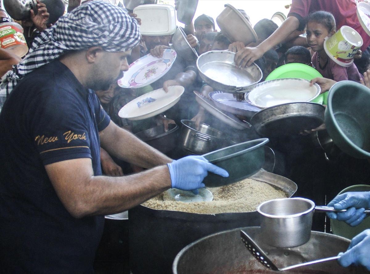Gazze'ye gelen yardımlara koşan ve bir kap yemeğe ulaşmaya çalışan Filistinlilerin durumu, görenlerin yüreğini parçalıyor.