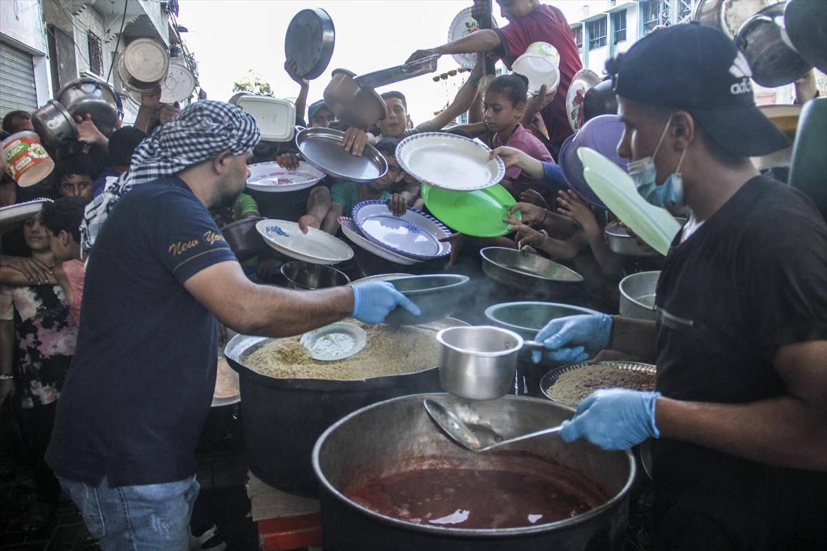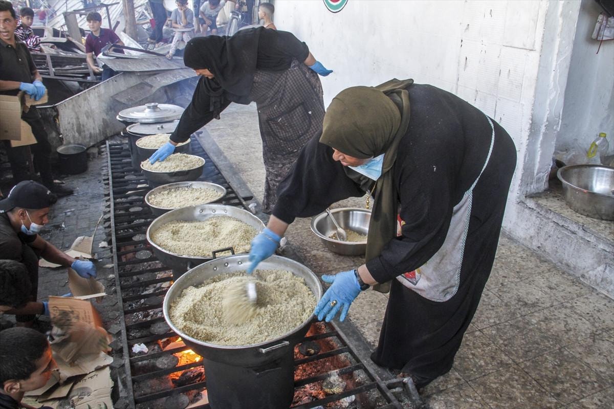 İsrail’in Gazze’ye saldıları sebebiyle Beyt Lahya’ya sığınan Filistinlilere hayır kurumları tarafından sıcak yemek dağıtıldı. Filistinliler, dağıtılan yemeklerden alabilmek için yoğunluk oluşturdu.