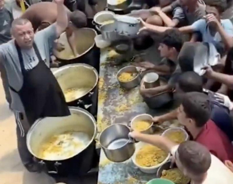 Onlarca çocuğun bir kap yemek için beklediği sırada kazanında yemek biten görevli, çaresizce yemek kalmadığını gösterirken gözyaşlarına hakim olamadı. O anlar kameralara yansıdı.