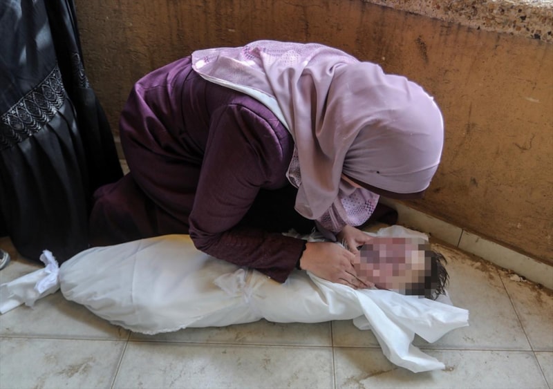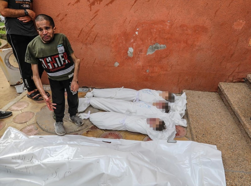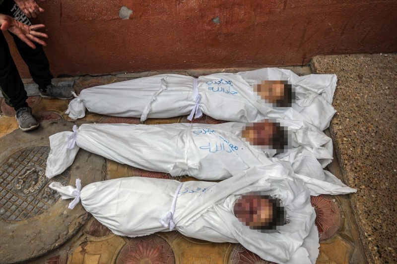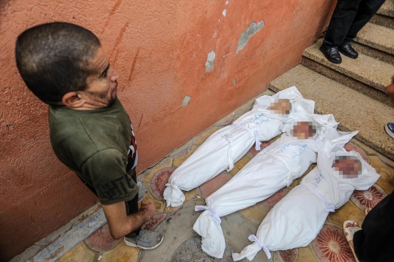 Hayatını kaybeden anne Cadallah ile çocukları Yahya, Musa ve İbrahim'in naaşları Han Yunus'taki Nasır Hastanesine getirildi.