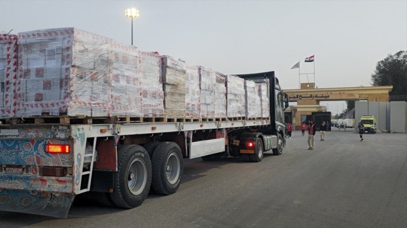 Kısıtlı sayıdaki insani yardım yüklü tırlar, Gazze Şeridi’ne ulaşmak üzere Mısır tarafından geçiş yaptı.