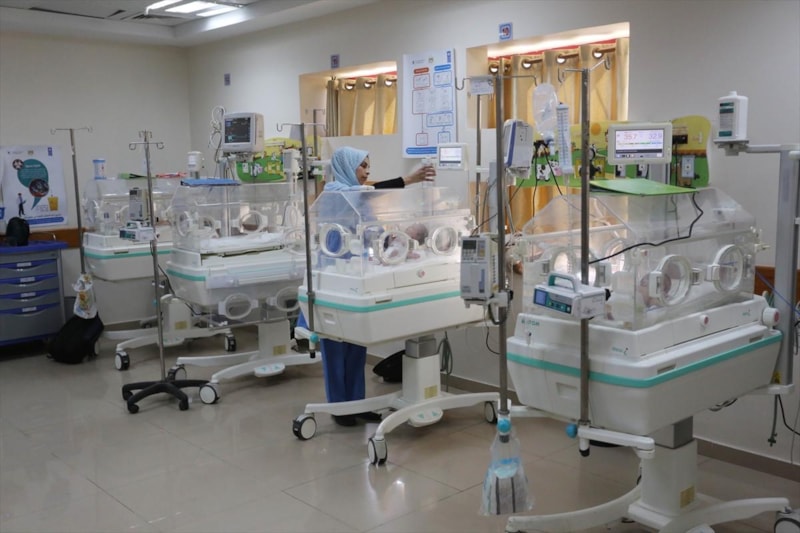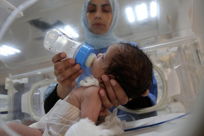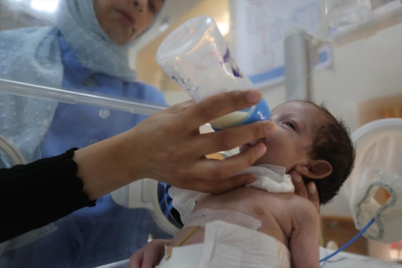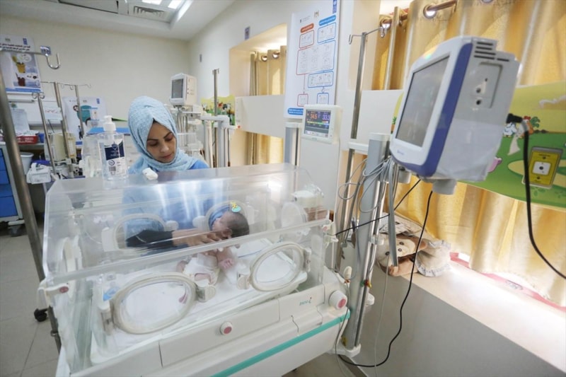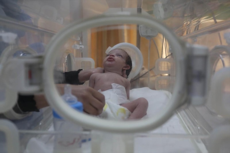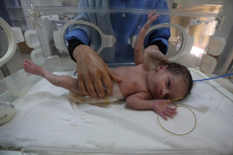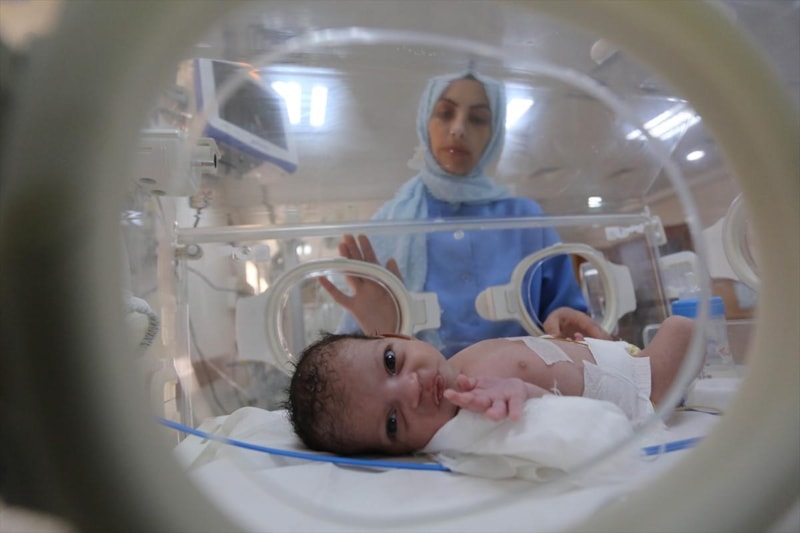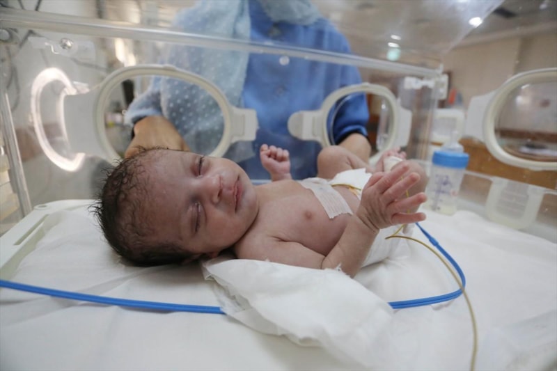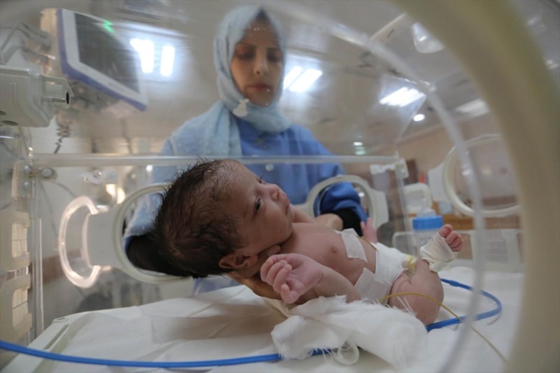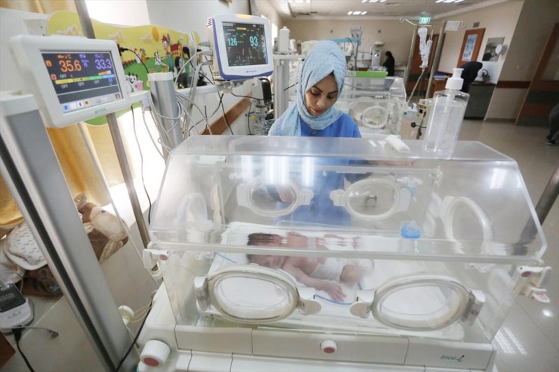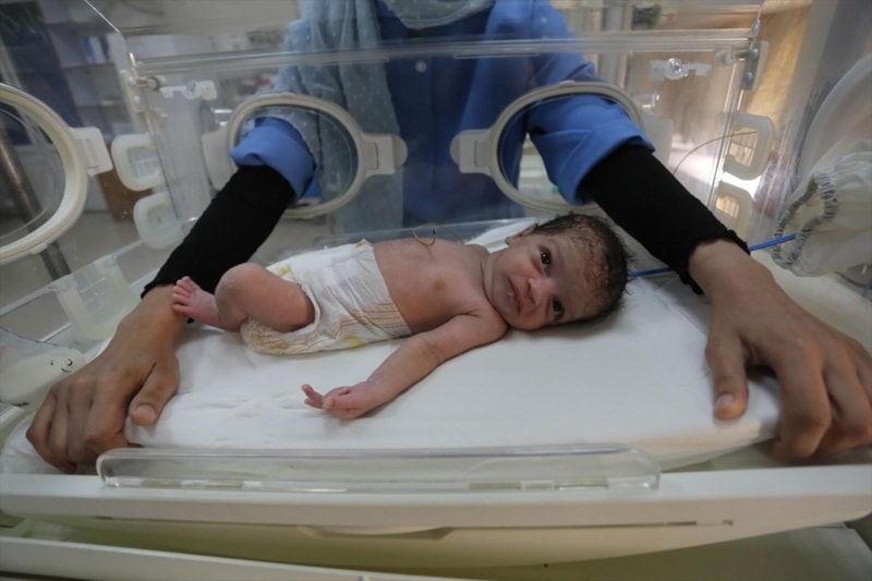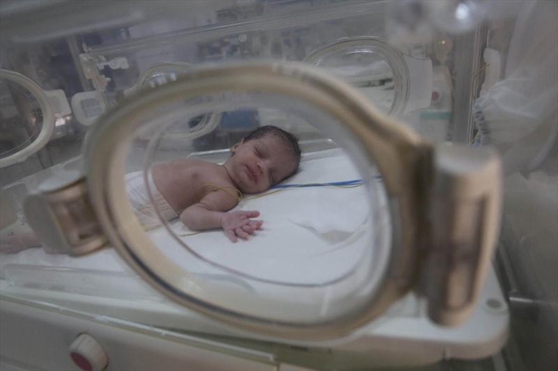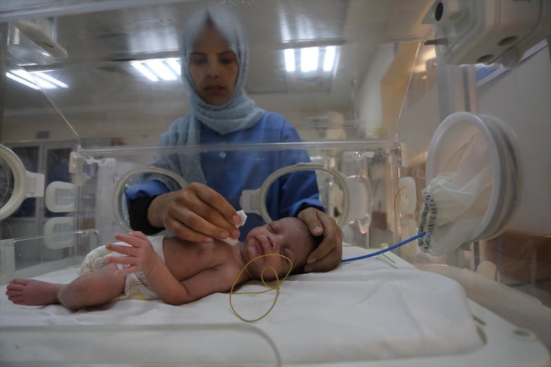 İsrail saldırılarında hayatını kaybeden Hanadi Abu Amsha'nın karnındaki bebek, sezaryenle alınarak Deyr Belah kentinde yer alan Aksa Şehitleri Hastanesi'ndeki yenidoğan yoğun bakım ünitesine getirildi