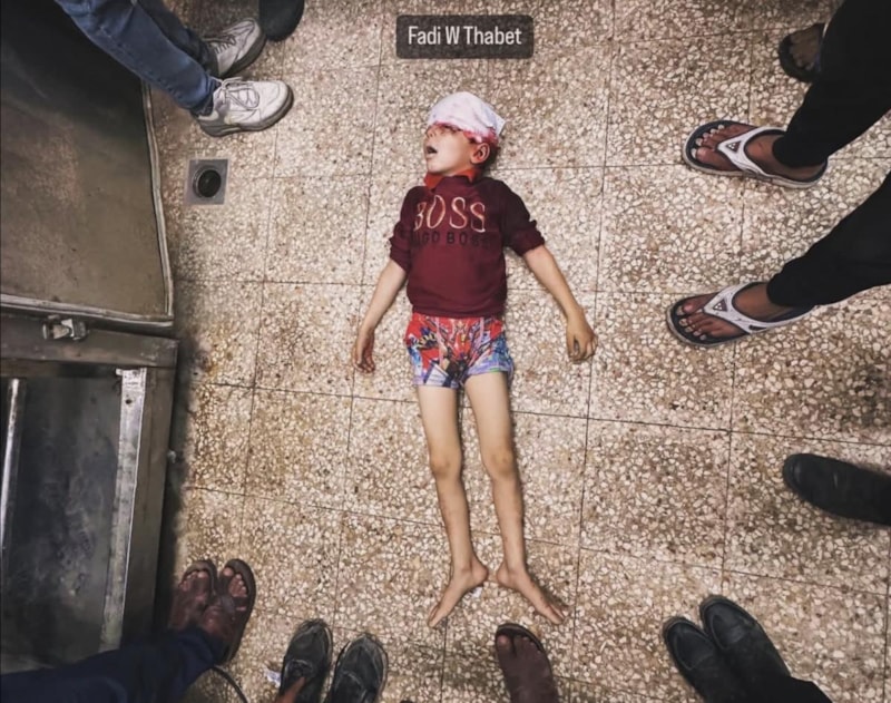 Katil İsrail ordusunun dün gerçekleştirdiği saldırı sonucu hayatını kaybeden ve yerdeki cansız bedeni görüntülenen küçük çocuğun fotoğrafı, görenlerin yüreklerini yaktı.