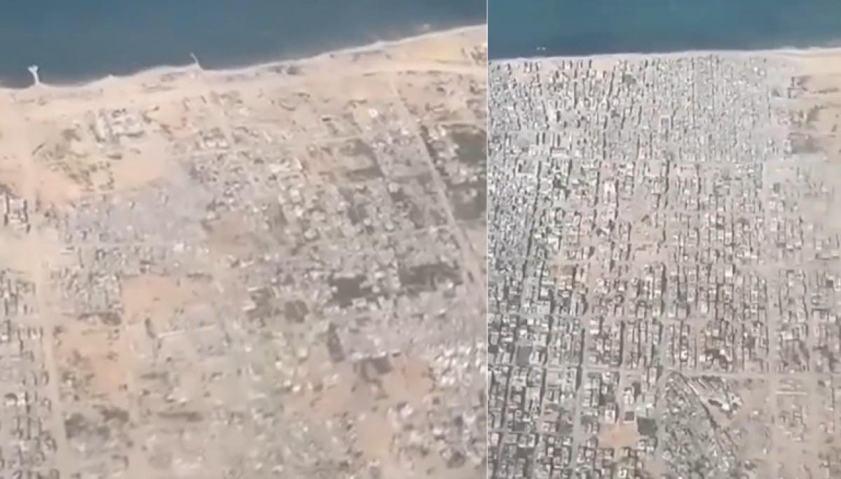 Gazze Şeridi'ndeki yıkımın boyutunu gösteren yeni bir görüntü ortaya çıktı. Videoda, Gazze'nin kıyı şeridinde neredeyse tüm binaların yıkıldığı görülüyor..