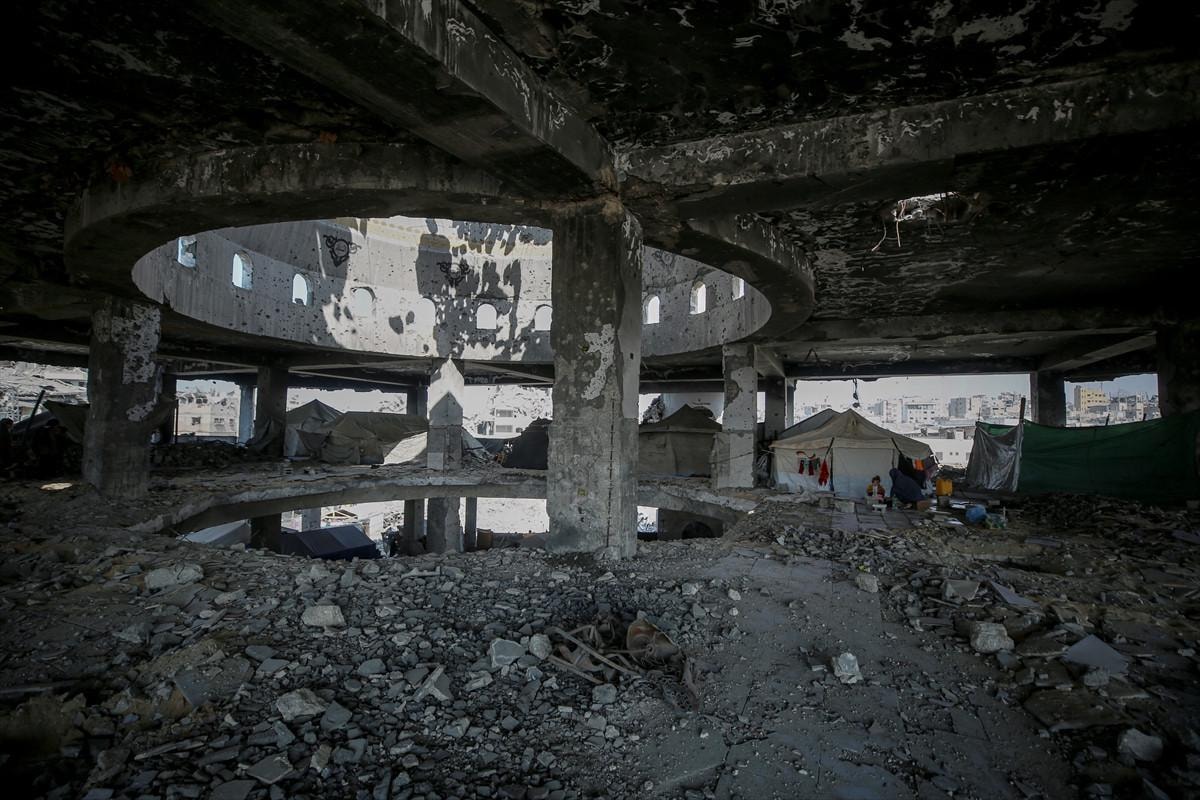Gazze kentinde, İsrail ordusunun saldırılarıyla Al-Zayton Mahallesi’ndeki El-Şafii Camisi büyük hasar aldı. Bazı aileler, cami binasının ayakta kalan kısmında çadır kurarak yaşamını devam ettiriyor.
