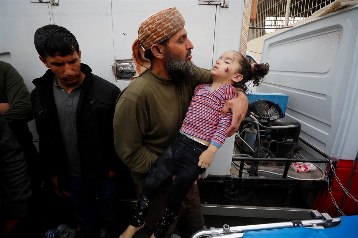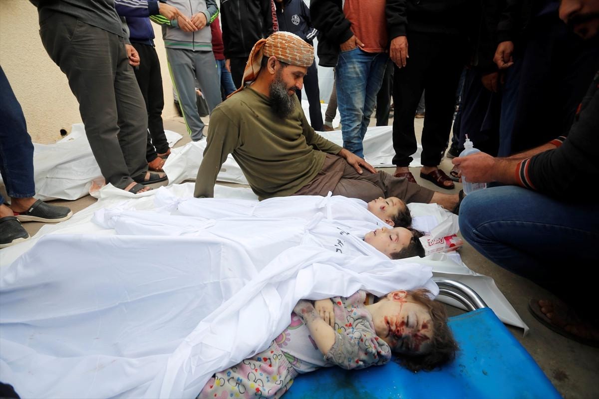 Saldırılarda hayatını kaybedenlerin naaşları, yakınları tarafından cenaze namazı kılınıp toprağa verilmek üzere Gazze'nin Deyr Belah kentindeki Aksa Şehitleri Hastanesi morgundan teslim alındı.