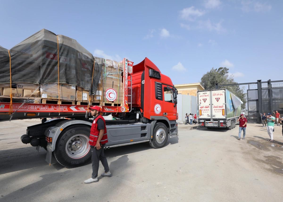 Birleşmiş Milletler (BM) yetkilisi yaptığı açıklamada, gıda ve ilaç gibi insani yardım taşıyan 14 tırın Gazze Şeridi'ne girdiğini ve yardımların Filistin Kızılayı ve BM Filistinli Mültecilere Yardım Ajansı (UNRWA) tarafından teslim alındığını açıkladı.