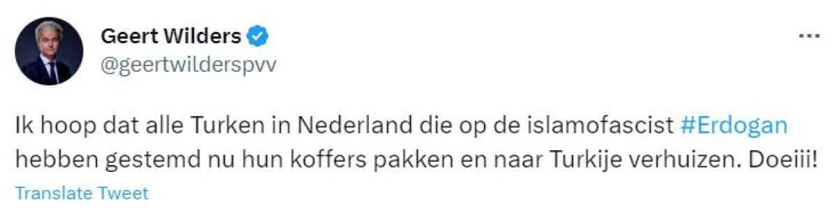 Müslüman düşmanı Wilders, sosyal medya hesabından paylaştığı ve Cumhurbaşkanı'nı da hedef aldığı mesajında şöyle dedi: