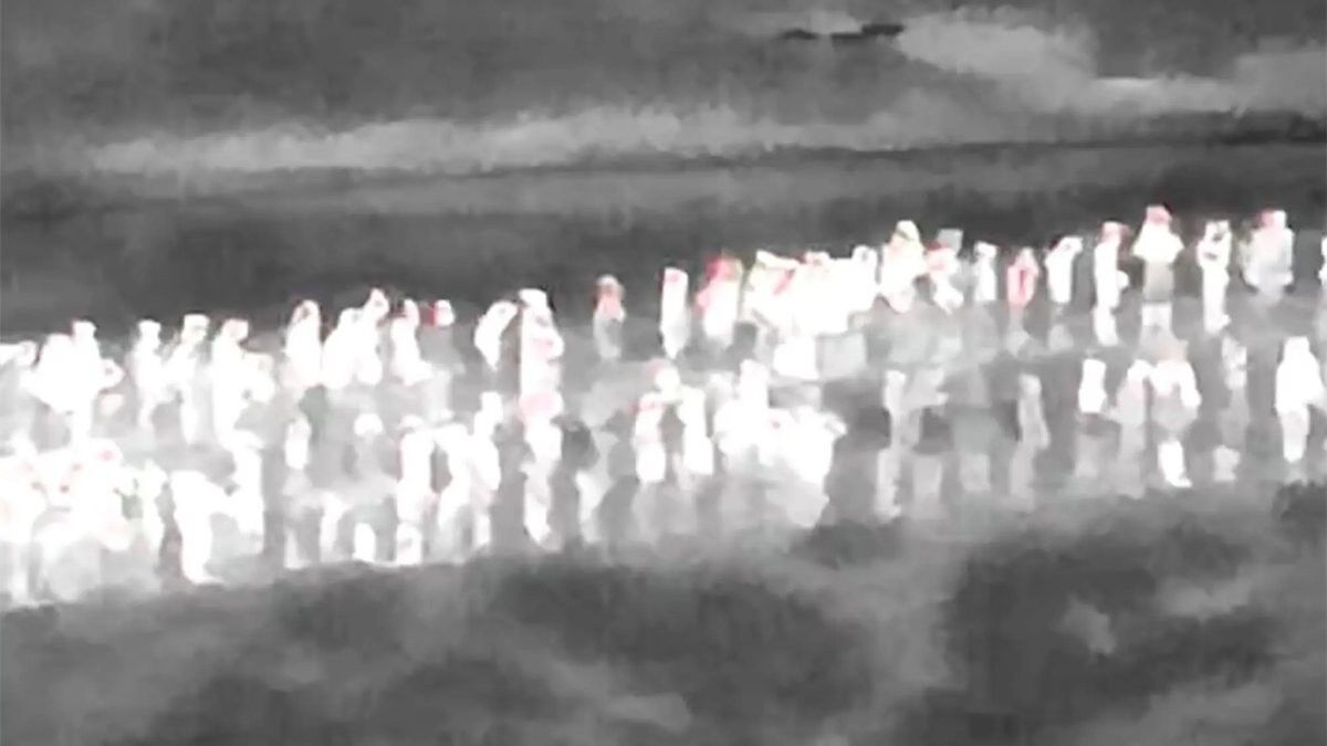 Sınırı karanlıkta geçen göçmenler, Fox News drone'una yansıdı.