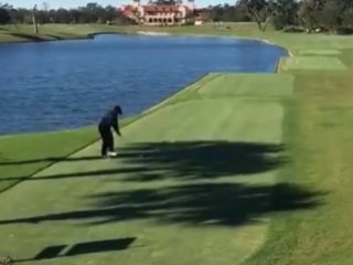 Golf oynarken yanlışlıkla ördeği vuran golfçü, yaşadığı şaşkınlığı gizleyemedi.