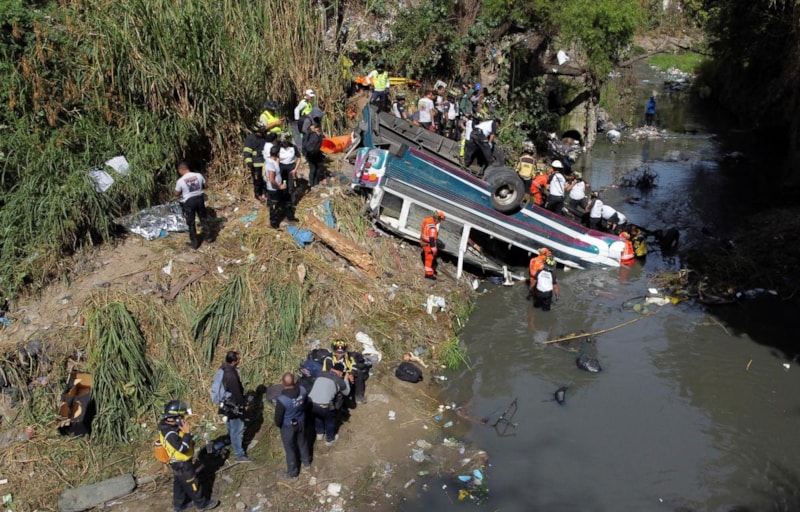 Orta Amerika ülkesi Guatemala'da San Agustin Acasaguastlan kasabasından yola çıkan otobüsün Guatemala kentindeki Belize Köprüsü'nden düşerek vadiye yuvarlandığını belirtildi.