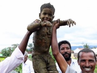 Güney Hindistan'da hastalıkların iyileşmesi ve refah getirmesi için inek gübresi yığınında erkeklerin olduğu bir savaş gerçekleştirildi.