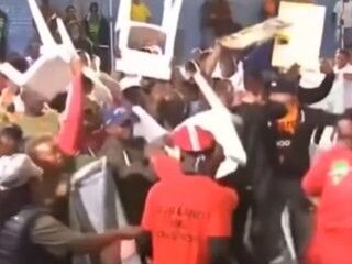 Güney Afrika'da milletvekili seçimleri sonrasında taraflar arasında kavga çıkınca, sandalyeler havada uçuştu.