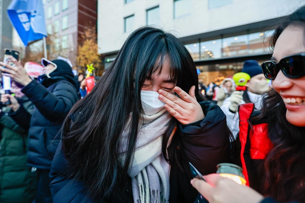 Başkent Seul'deki Ulusal Meclis önünde toplanan vatandaşlar, kararın açıklanmasının ardından kutlama düzenledi.