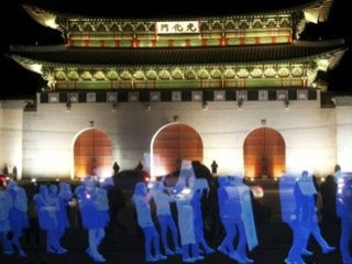 Güney Kore'de hükümetin ifade özgürlüğünü kısıtladığını savunan bir grup, insan boyutunda hologramlar ile protesto düzenledi.