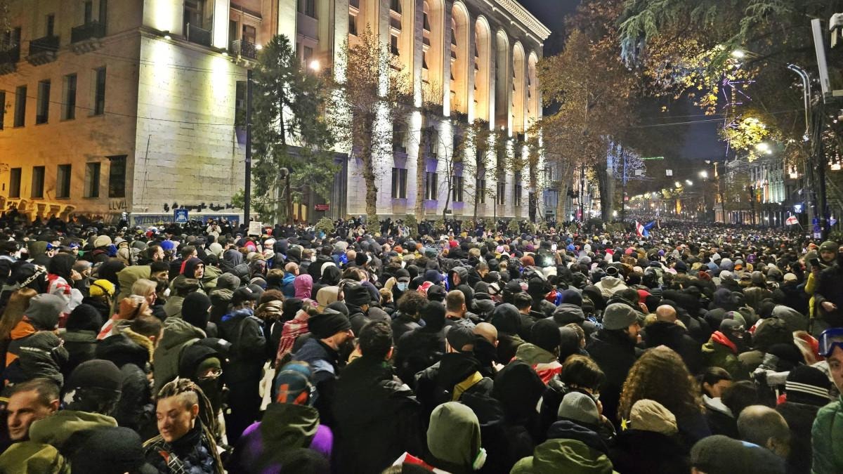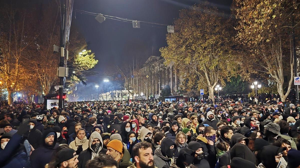 Gürcistan'da Başbakan İrakli Kobakhidze hükümetinin AB'ye katılım müzakerelerini 2028'e kadar durdurma kararına karşı düzenlenen protestolar 6. gününde devam etti.