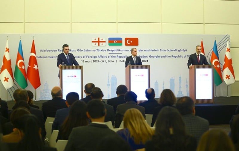 Azerbaycan'ın başkenti Bakü'de Türkiye-Azerbaycan-Gürcistan Üçlü Dışişleri Bakanları Toplantısı düzenlendi.