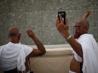 Bu yıl da Reuters'ın abonelerine geçtiği fotoğraflar arasında bir hacının şeytan taşladığı sırada selfie çektiği görülüyor